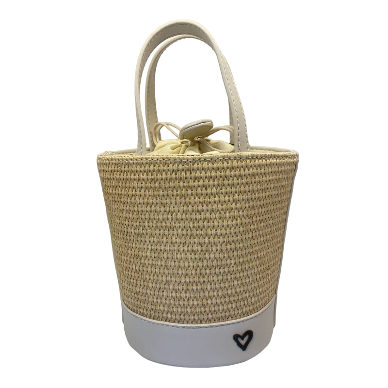 Effortlessly chic and endlessly versatile, this raffia bucket bag is the perfect blend of natural texture and modern design. Raffia gives the bag a relaxed, artisanal feel, while the structured veegan leather base and smooth top handles add durability and a refined finish. A drawstring fabric lining keeps your essentials secure, making it ideal for everyday wear or warm-weather outings.